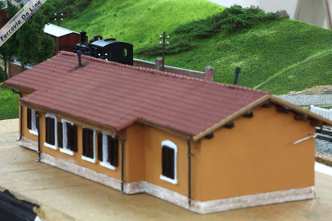 17. La casa cantoniera doppia ad un piano, tipica della linea Cosenza-Paola, è stata realizzata da Davide Godano sulla base di un rilievo in loco a cura del sottoscritto. Trattandosi di un elemento architettonico molto frequente, sulla linea vera c'è all'incirca un casello ogni settecento metri, ne è stato realizzato il calco in gomma siliconica per poterne realizzare facilmente altri esemplari. (Foto Mario De Prisco, 17 aprile 2011)