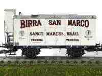 E' di Heris questo originale carro a due assi con garitta in H0 e insegna "Birra San Marco".