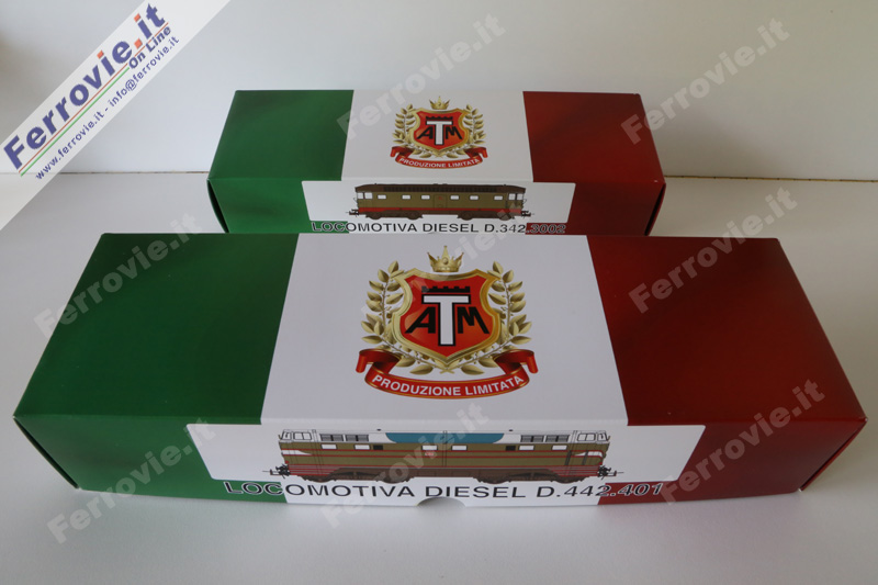 Prosegue l'ascesa nel mercato ferromodellistico italiano dell'ATM. Da alcune settimane sono nei negozi le riproduzioni in scala H0 delle locomotive Diesel FS D.442.401 Ansaldo in livrea fine anni '50 e D.342.3001 OM in livrea definitiva anni '60, che si caratterizzano per un miglioramento complessivo rispetto ai 600 pezzi (cadauno) della prima tiratura (vedi News modellismo del 28/05/2012).