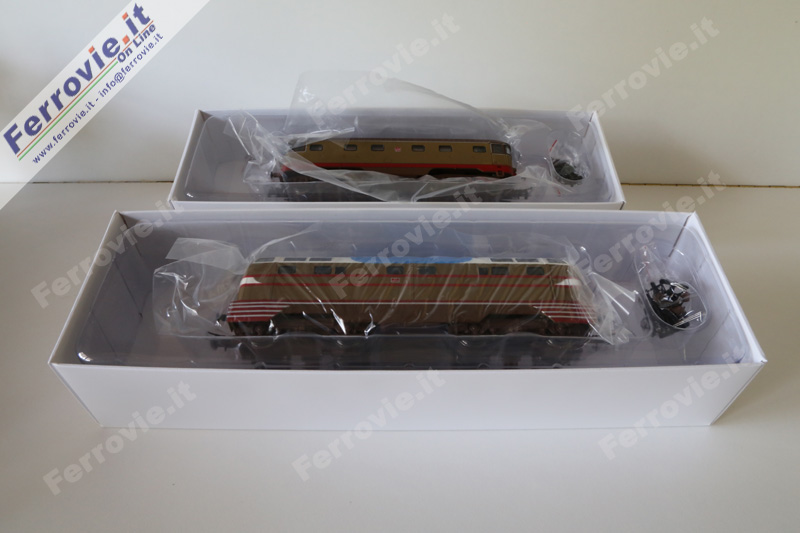 All'interno la locomotiva è riposta in un guscio di plastica trasparente ed è avvolta in una pellicola per facilitarne l'estrazione, con un ulteriore coperchio trasparente di protezione. Una tasca laterale contiene una bustina con numerosi aggiuntivi da montare a cura del modellista. Non manca un dettagliato foglio illustrato con informazioni di vario tipo.