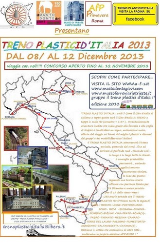 E' aperta a privati ed associazioni, fino al 12 novembre, l'iscrizione a Treno Plastici d'Italia 2013, un'entusiasmante avventura inedita attraverso plastici e diorami italiani in scala H0.