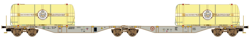 Carro Sggmrss 90' con due containers serbatoio in livrea "Warsteiner"