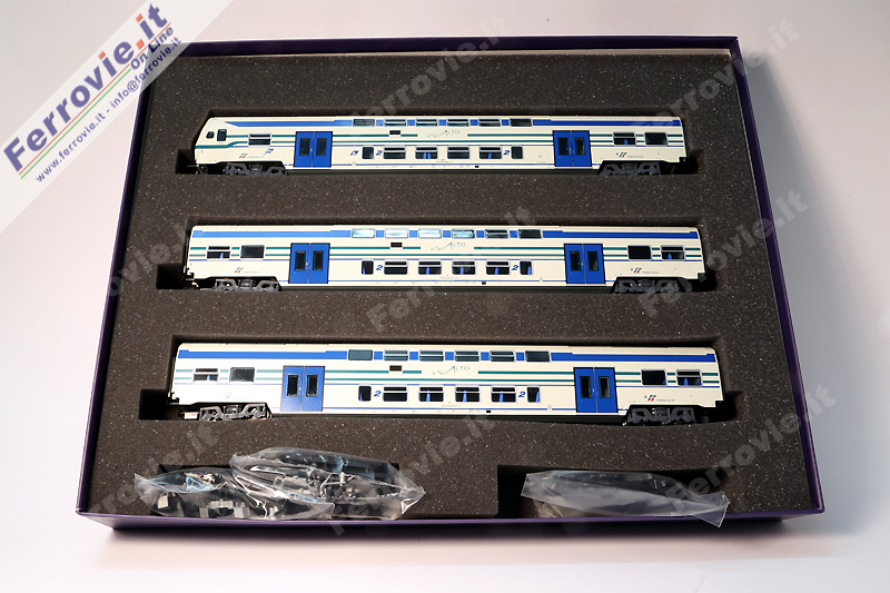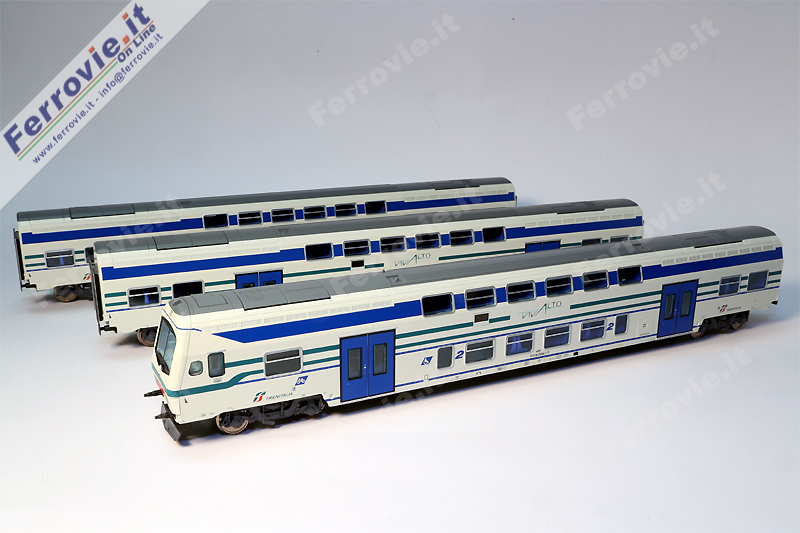 | Descrizione: | Set tre carrozze doppio piano Vivalto in livrea XMPR, di cui una pilota e due intermedie |