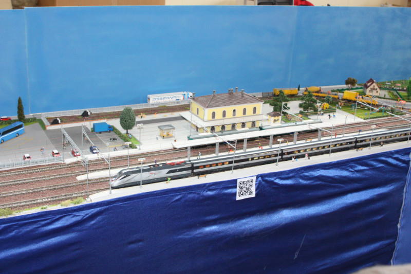 Nello spazio di "Modellismo Euganeo" campeggiava un lungo plastico dal tracciato ovale diviso in due da un fondale azzurro cielo. Nella parte in vista una stazione di transito a quattro binari su una linea a doppio binario elettrificato, agli estremi poco paesaggio ma impreziosito da imponenti opere d'arte. Sul retro una stazione nascosta per l'alternanza dei convogli.
