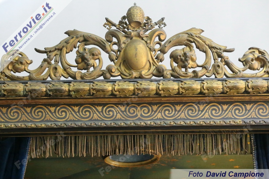 Il primo vagone, la cosiddetta balconata, serviva come loggia per le benedizioni papali. La seconda vettura, collegata alla prima da una pedana con ringhiere e cancelletti in ferro battuto, è costituita da una Sala del trono con piccolo appartamento annesso con bagno e camera da letto, ad uso privato del Pontefice, rivestito di stoffe purpuree. La terza vettura, ancora più sontuosa, ospita una Cappella consacrata nella quale il papa tenne messa durante uno dei suoi viaggi.