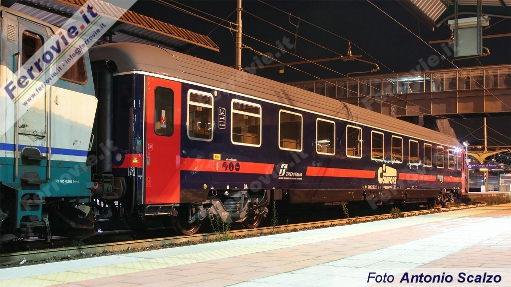 La coloritura, che per Trenitalia è ancora sperimentale, prevede il blu scuro quale colore di base, completato da porte di salita rosse e striscia dello stesso colore lungo la fiancata, interrotta a metà veicolo da un inedito logo "Comfort", nonchè dai loghi "Intercity Night" e "FS Italiane". Nera la base del telaio, mentre i carrelli sono in grigio come in uso da alcuni anni a questa parte, così come il tetto.