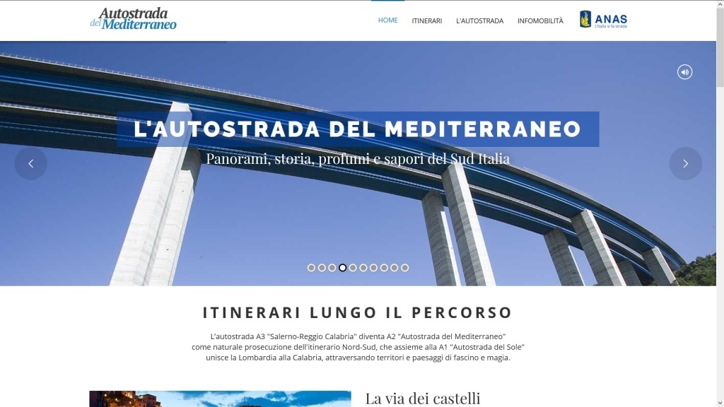 L'Autostrada del Mediterraneo è un progetto fortemente voluto da Anas con l'obiettivo di valorizzare la bellezza del Mezzogiorno guidando l'automobilista verso una riscoperta consapevole dello straordinario patrimonio turistico e culturale del Sud d'Italia. Nei prossimi mesi, Anas avvierà una campagna per far conoscere le enormi potenzialità che questa autostrada può esprimere, valorizzando gli itinerari religiosi, culturali naturalistici, enogastronomici dei luoghi che percorre.