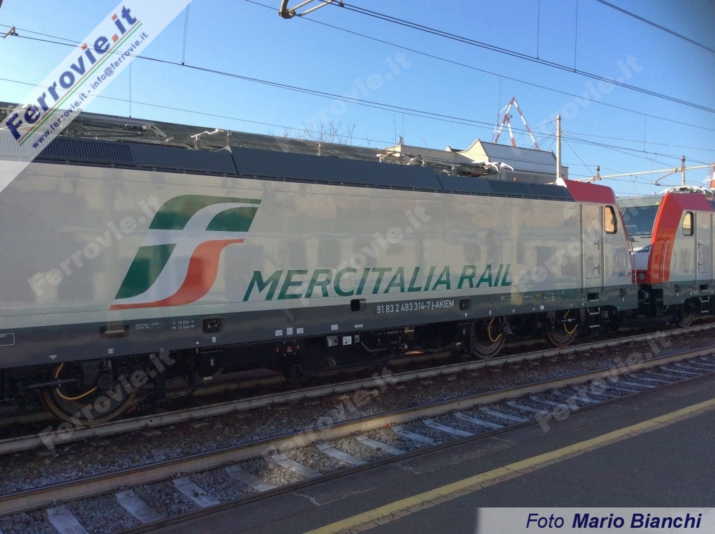 VADO LIGURE (Savona) - Martedì 3 gennaio, con la riapertura dello stabilimento Bombardier di Vado Ligure dopo le vacanze natalizie, è avvenuta la consegna delle E 483.314 e 315 prodotte per Akiem e noleggiate da Mercitalia Rail. Le due locomotive appartengono ad un ordinativo di noleggio per 7 macchine dello stesso gruppo, per i servizi merci della nuova società del gruppo FS Italiane (vedi News ferroviarie del 22/12/2016) e presentano già di fabbrica la nuova livrea con testate rosse e grande logotipo FS sulle fiancate, accompagnato dalla scritta "Mercitalia Rail".