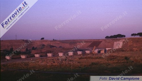 1. Da qualche mese sono aperti anche i primi cantieri nelle vicinanze della Capitale; nell'immagine scattata alle prime luci del mattino, uno di questi presso Lunghezza, con le pile del viadotto Benzone in primo piano ed i lavori preliminari di scavo di una galleria. (Foto David Campione, 20 giugno 1998)