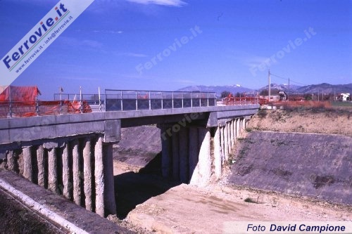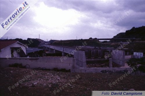 3. Un ponte stradale già completato, che scavalca la sede ferroviaria in un tratto in trincea nei pressi di San Giovanni Incarico (Foto David Campione, 9 febbraio 1998)