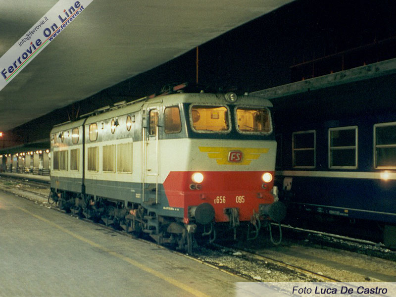 Al termine del suo servizio, la E.656.095 attende a Napoli Centrale di essere condotta nel vicino Deposito Locomotive di Smistamento. (Foto Luca De Castro, febbraio 2002)