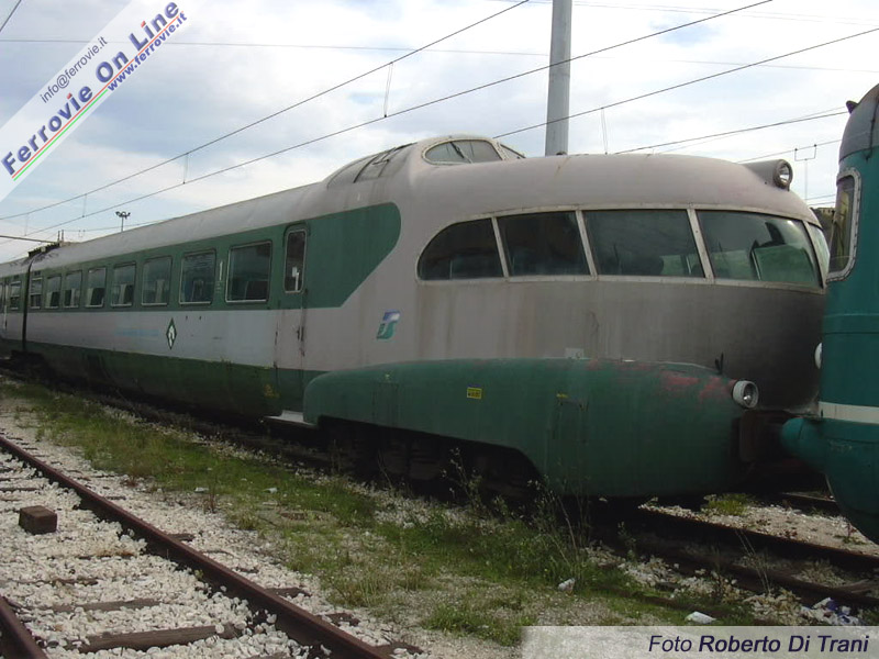 Si presenta così lo storico ETR.302 Settebello, ultimo esemplare del suo gruppo e nonostante ciò da anni accantonato ad Ancona. Si riuscirà a preservarlo? (Foto Roberto Di Trani, settembre 2005)