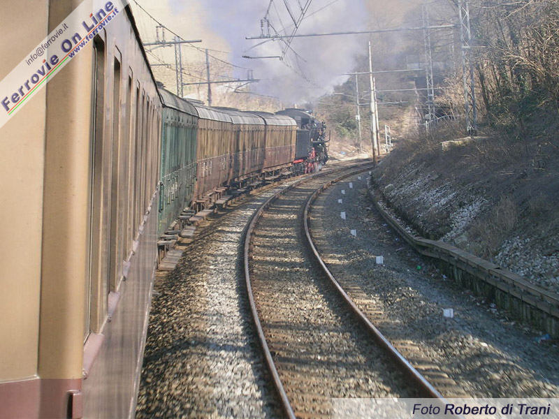 Da poco revisionata, la 685.196 conduce il suo convoglio di carrozze storiche tra Rimini ed Ancona, lungo la ferrovia Adriatica. (Foto Roberto Di Trani, 13 febbraio 2006)