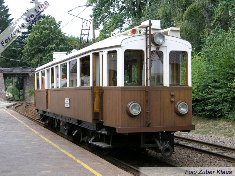 La splendida elettromotrice "Alioth" della SAD nella stazione capolinea di Collalbo (Klobenstein), in attesa di ripartire verso L'Assunta (Maria Himmelfahrt), capolinea opposto della breve linea del Renon lunga solo 7 kilometri. (Foto Zuber Klaus, gennaio 2005)