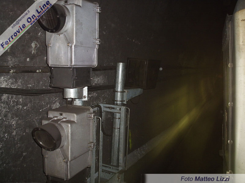 Privo delle abituali maschere nere con bordo bianco in quanto posizionato in galleria, questo segnale FS si presenta "nudo" rispetto a come siamo abituati a vederlo alla luce del sole. Siamo nei pressi della stazione di Framura, protetta appunto da questo segnale, sulla linea Spezia - Genova. (Foto Matteo Lizzi, 25 marzo 2006)
