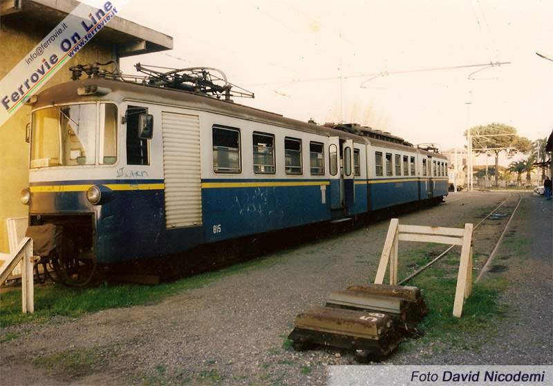 E' "ridotto" sia nello scartamento che nella composizione l'Etr.815, ripreso nel deposito-officina di Roma Centocelle delle ferrovie laziali. Questo elettrotreno a scartamento ridotto rientrava nel II gruppo (810-817) di treni articolati acquistati agli inizi degli anni sessanti dall'allora Stefer. (Foto David Nicodemi, novembre 1997)