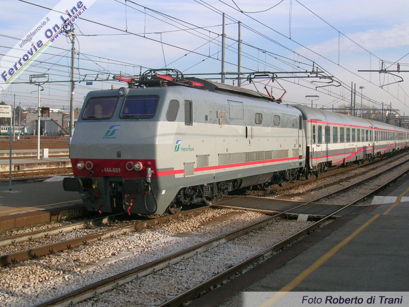 Un'elegante livrea è quella che sfoggia la E.444.089 nella coloritura per gli Eurostar City, qui ripresa a Rimini con l'ES 9712 Lecce - Milano. (Foto Roberto Di Trani, 13 dicembre 2006)