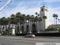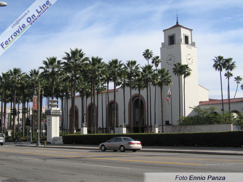 Decisamente lontana dai canoni estetici europei la Union Station di Los Angeles, California, che uno sguardo distratto potrebbe scambiare per una chiesa, venne costruita nel 1939 nello stile delle missioni spagnole, come molti altri fabbricati viaggiatori nel sud-ovest degli Stati Uniti (molto famosi, ad esempio, sempre in California, San Bernardino e la maestosa Third Street Station della Southern Pacific a San Francisco, purtroppo non più esistente). Negli anni Quaranta e Cinquanta, cioè nel periodo d'oro delle grandi compagnie e del trasporto passeggeri a lunga distanza negli Stati Uniti, dalle banchine di questa stazione arrivavano e partivano a bordo di magnifici e lussuosi "streamliners" i volti più noti di Hollywood. (Foto Ennio Panza, 18 febbraio 2007)