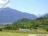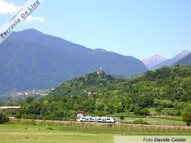In un assolato pomeriggio di giugno, un Minuetto Diesel di Trenitalia effettua un regionale Bassano del Grappa - Trento, circondato dai monti della Valsugana. (Foto Davide Cester, 13 giugno 2009)