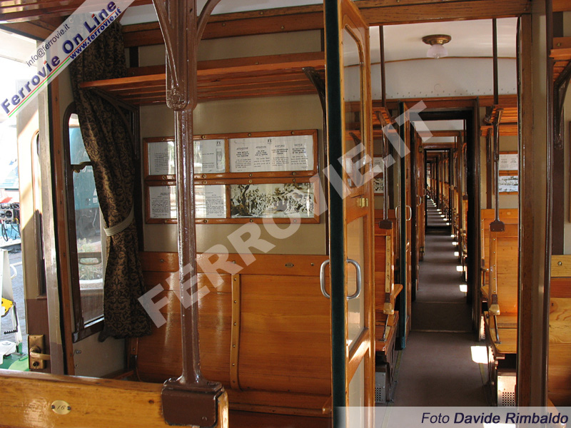 Interno di una carrozza Centoporte a Genova Brignole, in composizione al treno storico organizzato per la festa della marineria e diretto a La Spezia Centrale. Le porte intermedie aperte delle carrozze consentono questa particolare inquadratura del corridoio centrale, che lascia intravedere fino al fondo del convoglio. (Foto Davide Rimbaldo, 13 giugno 2009)