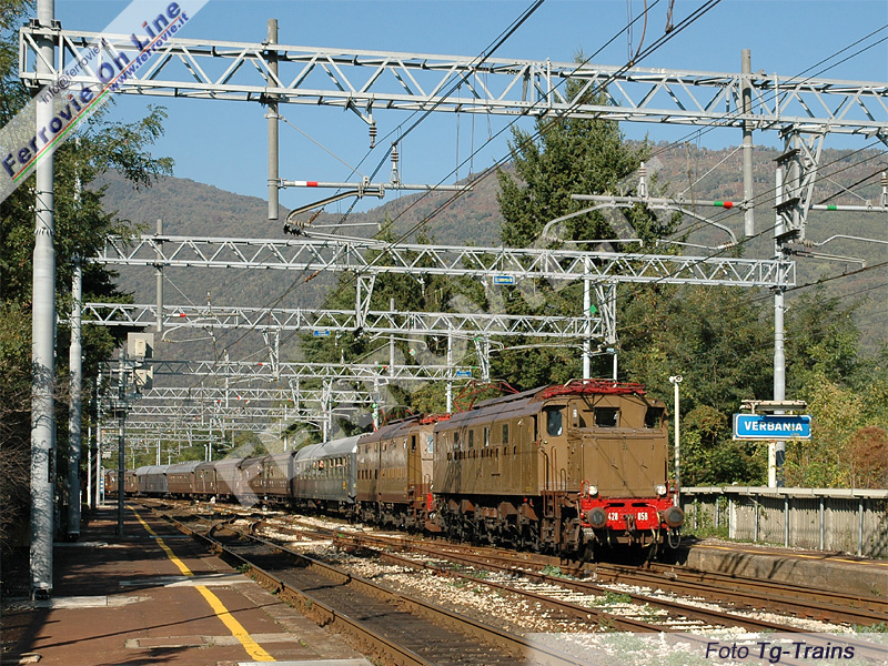 Due veterane del parco FS, la E.428.058 e la E.636.164, di ritorno da Domodossola con un treno speciale dalla composizione alquanto assortita. (Foto Tg-trains.com, 16 ottobre 2005)