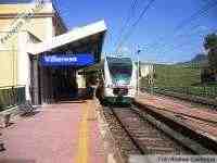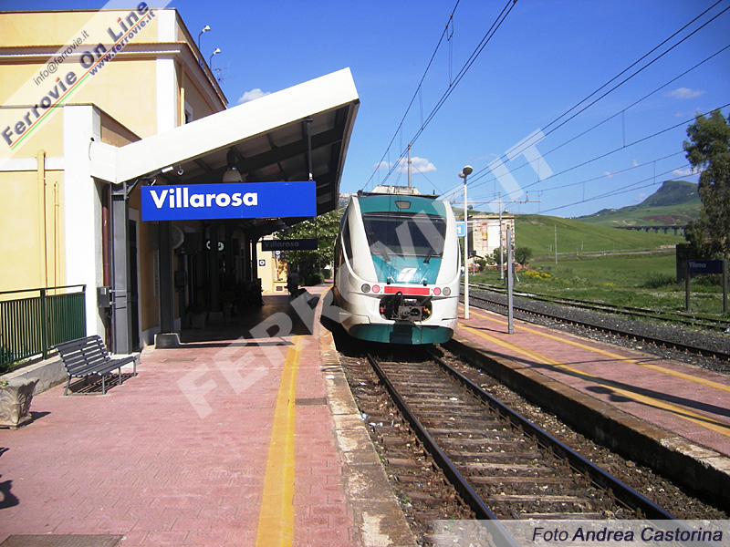 In una tiepida giornata di maggio il treno regionale 3836, Roccapalumba - Catania, effettua la fermata presso la caratteristica stazione di Villarosa, situata lungo la linea Catania - Palermo. La stazione è nota per il suo famoso "treno museo", costituito da dai vecchi carri merci, sapientemente riqualificati, che ospitano numerosi oggetti della tradizione culturale siciliana, nonchè l'originale camera da letto del barone Deodato che fondò la cittadina di Villarosa. (Foto Andrea Castorina, 10 maggio 2009)