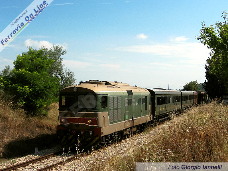 La D.345.1060, preservata dall'ATSP - Associazione Treni Storici Puglia, in viaggio con il Treno dell'Archeologia tra Barletta e Spinazzola nei pressi di Canne della Battaglia. (Foto Giorgio Iannelli, 28 giugno 2009)