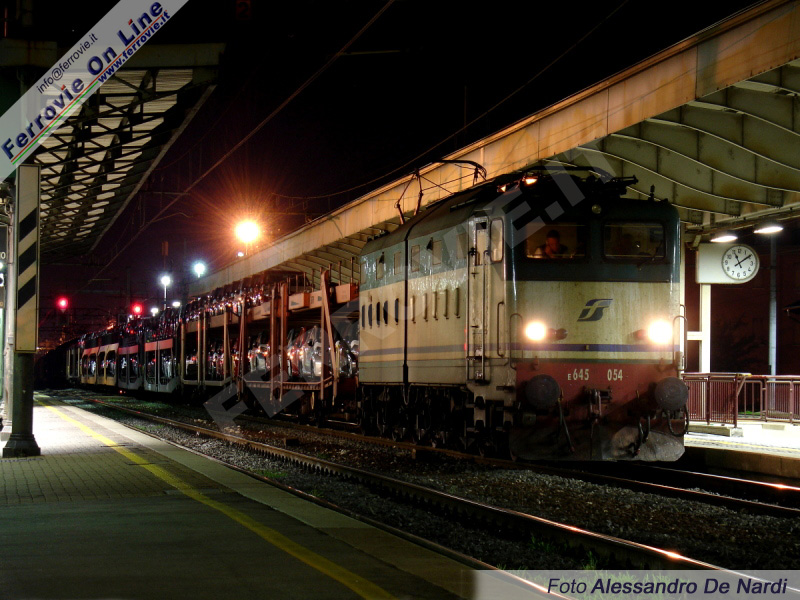 L'attesa della luce verde costringe un treno merci internazionale a una breve sosta a Conegliano (Treviso). Una "scena d'altri tempi": il locomotore alla testa del convoglio da Tarvisio in poi appartiene al gruppo E.645, ora non più in servizio. (Foto Alessandro De Nardi, agosto 2006)