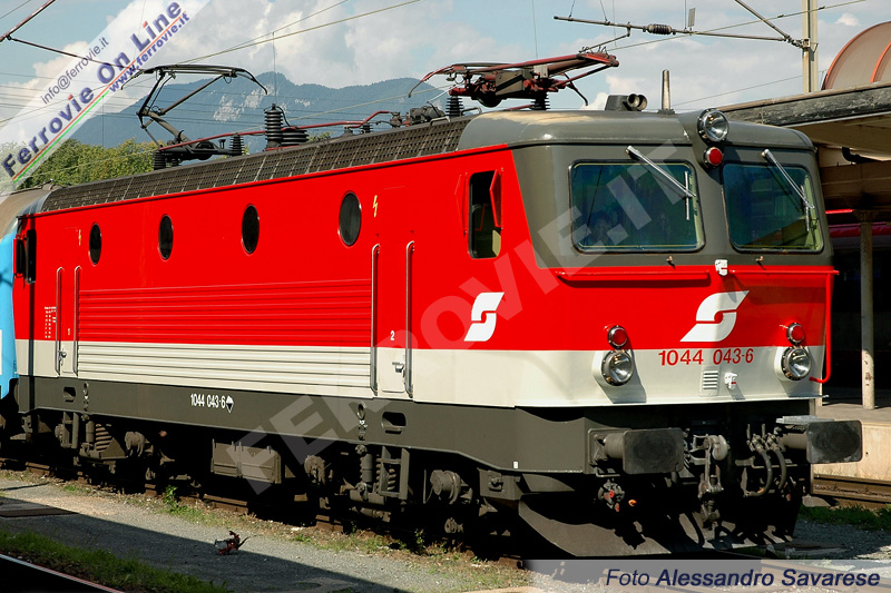 E' un classico nel panorama ferroviario austriaco il gruppo 1044 delle OeBB, che conta complessivamente 217 unità. Locomotore universalmente impiegato sulla rete austriaca dal 1976 al 1995, con l'avvento delle moderne 1016 e 1116, ha visto insediato il suo ruolo in testa ai treni di ogni tipo. Qui la 1044.043 a Villach. (Foto Alessandro Savarese, 23 maggio 2005)