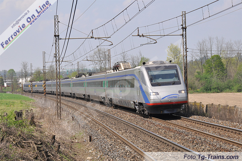 L'ETR.470 n.5 attraversa il territorio di Carimate diretto a Zurigo, in servizio per la società italo-svizzera Cisalpino, sciolta nel dicembre 2009. (Foto Tg-Trains.com, 15 aprile 2009)
