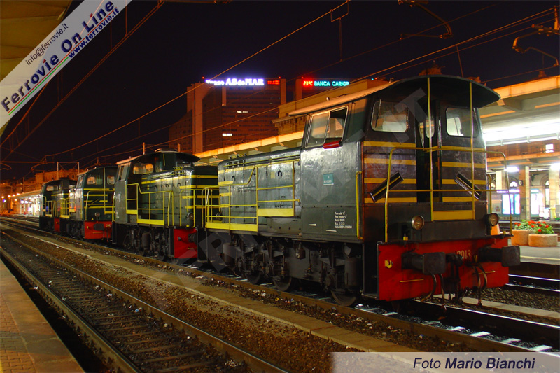 Foto notturna per una quaterna di 245 (2013, 2003, 2007, 2008), in riposo a Genova Brignole dopo una lunga giornata di manovre. (Foto Mario Bianchi, 4 giugno 2010)