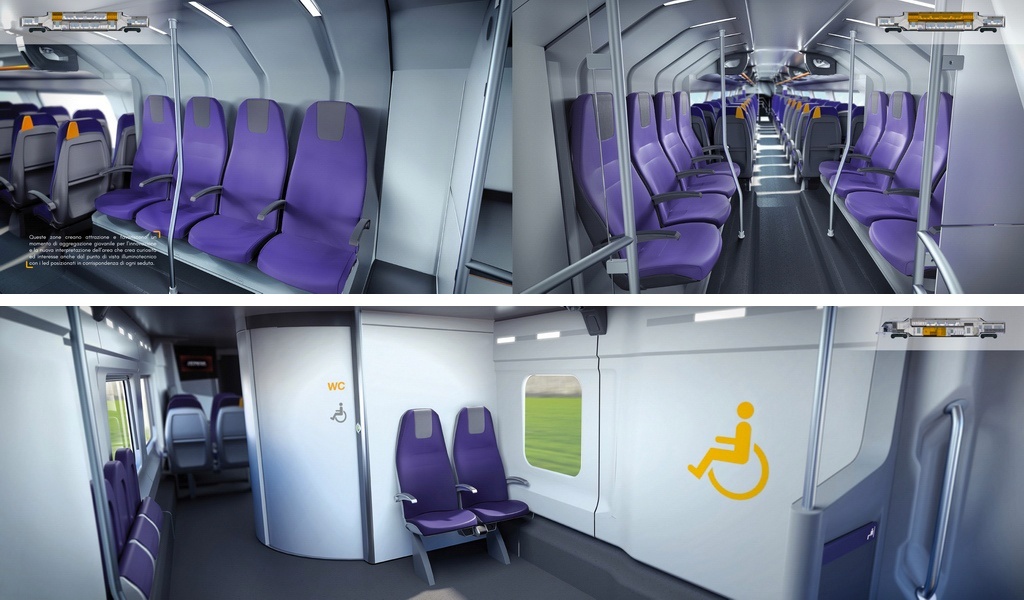 Grazie alla collocazione dei componenti di trazione sull'imperiale, gli allestimenti interni disporranno di ampi spazi per i passeggeri e potranno essere personalizzati in base alle esigenze espresse dalle Regioni committenti. L'ambiente viaggiatori consterà di ampie superfici vetrate (1,12 m2 al piano superiore, 1,19 m2 al piano inferiore, 7 monitor per cassa (unità intermedie) di cui 3 da 18,5" e 4 da 21", area per il trasporto biciclette con prese di corrente per ricarica di bici elettriche, elevata capacità di trasporto bagagli, impianto di climatizzazione ad elevate prestazioni, prese di corrente e USB ai posti a sedere, Wi-Fi su server interno, illuminazione a LED e intercomunicante di larghezza maggiorata nonché senza porte di intercircolazione per massimizzare la trasparenza all'interno del convoglio. Le scale di accesso al piano superiore (di 8 gradini) e larghe 80 cm saranno poste in corrispondenza dei carrelli, consentendo un incremento significativo della capacità di trasporto.