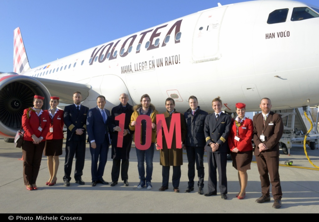 Volotea, la compagnia aerea low cost basata a Venezia che collega aeroporti di medie e piccole dimensioni, ha celebrato oggi presso lo scalo lagunare il traguardo dei 10 milioni di passeggeri trasportati a livello internazionale. A festeggiare il fortunato passeggero, Pierre Droneau, un premio che strizza l'occhio al celebre mercante veneziano Marco Polo e ai suoi lunghissimi viaggi in giro per il Mondo: la possibilità di volare gratuitamente con un accompagnatore, per tutta la vita, a bordo degli aeromobili del vettore. Ma non è finita qui: se Pierre Droneau riuscirà a visitare tutte le destinazioni in cui la low cost opera, potrà regalare lo stesso premio anche ad un'altra persona a sua scelta.