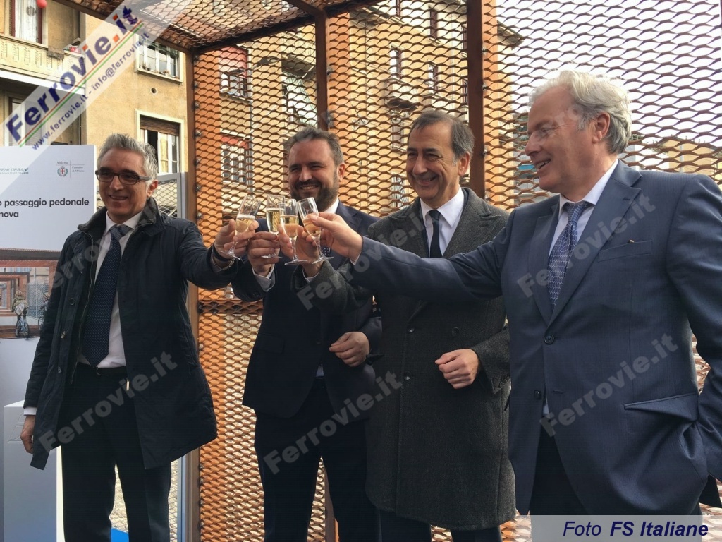 La nuova passerella ciclopedonale è stata inaugurata oggi presenti Giuseppe Sala, Sindaco di Milano, Marco Granelli, Assessore alla Mobilità, Gabriele Rabaiotti, Assessore ai Lavori pubblici, Cristina Tajani, Assessore al Commercio, Carlo De Vito, AD FS Sistemi Urbani, Vincenzo Macello, Direttore Produzione della Lombardia di Rete Ferroviaria Italiana, Santo Minniti, Presidente di Municipio 6 e Federico Gordini, Presidente dell'associazione Zona Tortona Savona - Confcommercio Milano.