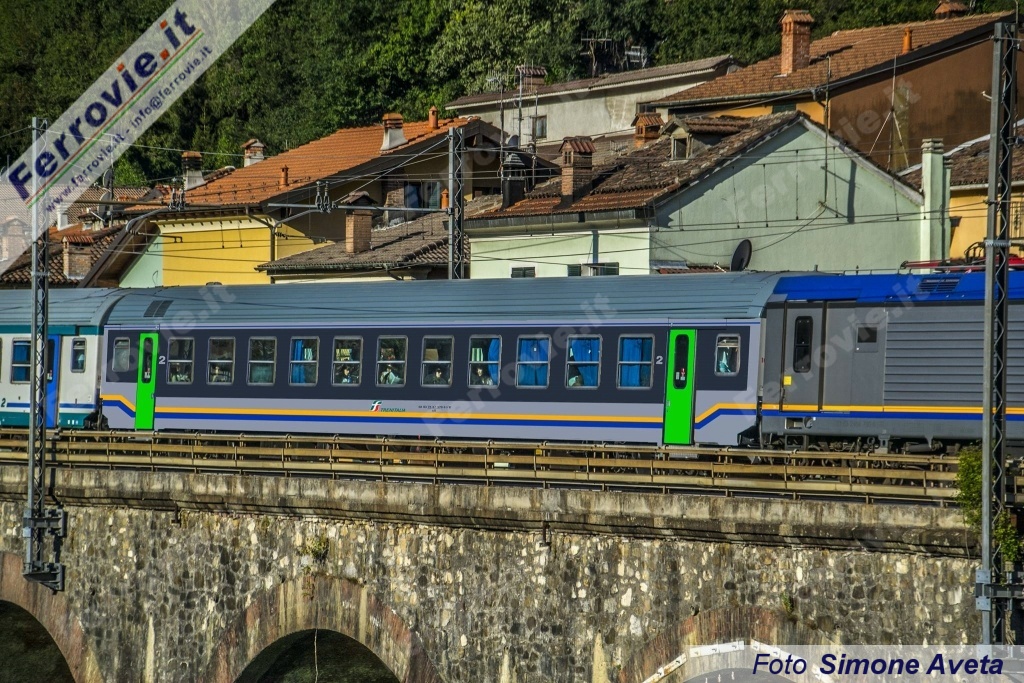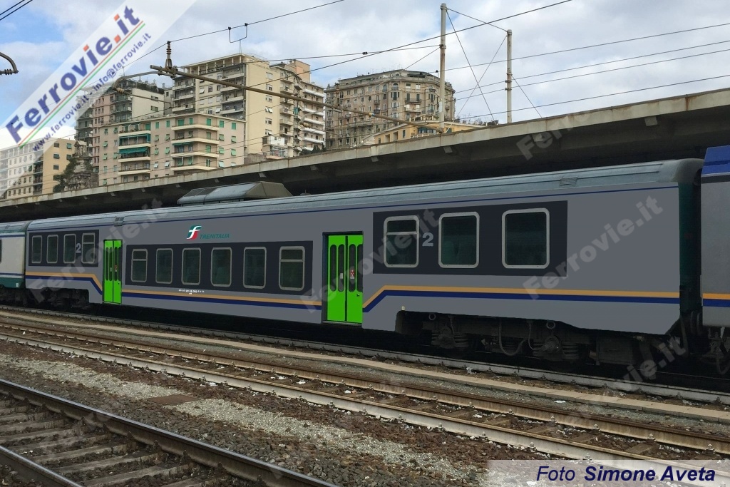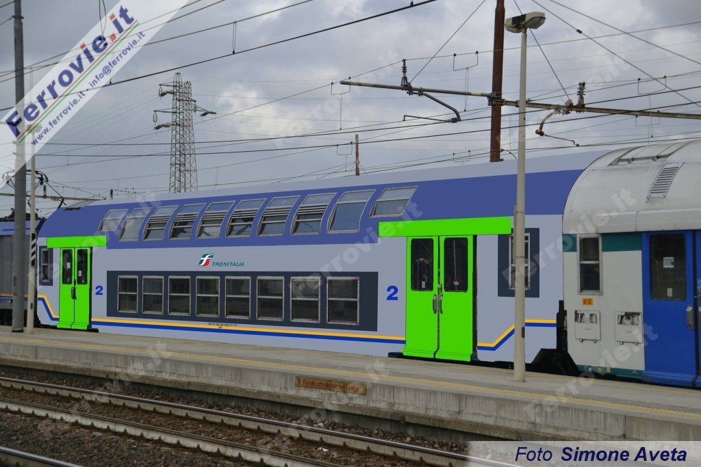 ROMA - Potrebbe essere questa la veste delle vetture del Trasporto Regionale di Trenitalia. Nell'elaborazione di Simone Aveta, ecco come potrebbero apparire le carrozze MDVC (Medie Distanze a Vestiboli Centrali), MDVE (Medie Distanze a Vestiboli Estremi), le Doppio Piano Casaralta e ancora le Piano Ribassato con la nuova livrea Regionale Trenitalia. Già applicata in fabbrica per i rotabili di nuova produzione (tra cui l'ultima serie di locomotive E.464, ETR.324 e 425 "Jazz", ATR.220 Tr "Swing" ed ultimo lotto di carrozze Vivalto), il nuovo schema di coloritura è in corso di applicazione sui mezzi Trenitalia già in servizio in sostituzione della livrea XMPR, come le locomotive E.464, carrozze Vivalto di prima e seconda serie, ALn 501 e ALe 501 "Minuetto", ALe 426 ed ALe 506 "TAF".