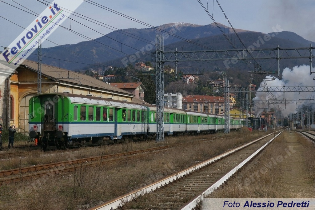 LUGANO (Svizzera) - Treno storico internzazionale Italia - Svizzera in occasione del Rabadan, il carnevale di Bellinzona, organizzato dall'Associazione Verbano Express. Domenica 26 febbraio il "Rabadan Express", come è stato battezzato il convoglio, composto dall'imponente locomotiva a vapore BR 50 3673 ex DB, dalla locomotiva elettrica storica preservata 10987 ex FFS, appartenente al Gruppo Ae 4/7 e da 7 vetture dei gruppi EB 930 ed EA 940 ex FNM Milano ha portato i viaggiatori da Luino a Bellinzona, dove si svolge uno dei Carnevali più belli della Svizzera. Il corteo dei carri parte infatti proprio dal piazzale antistante la stazione ferroviaria ticinese.