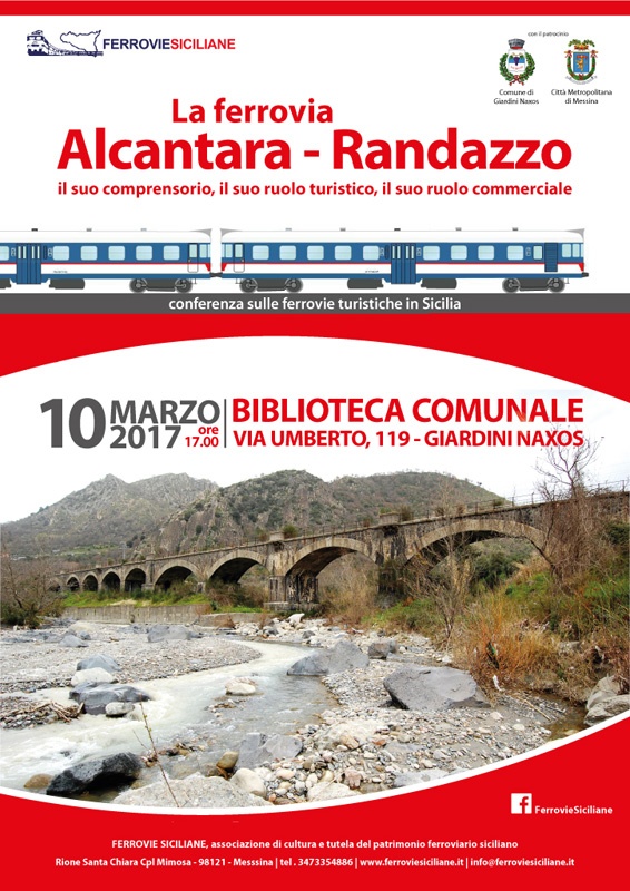 Nell'ambito delle ferrovie turistiche, a seguito della recente approvazione alla Camera dei Deputati della PdL 1178, l'Associazione Ferrovie Siciliane ha organizzato una conferenza dal titolo "La ferrovia Alcantara - Randazzo, il suo comprensorio, il suo ruolo turistico, il suo ruolo commerciale" che si svolgerà venerdì 10/03/2017, con inizio alle ore 17.00, presso la Biblioteca Comunale di Giardini Naxos.