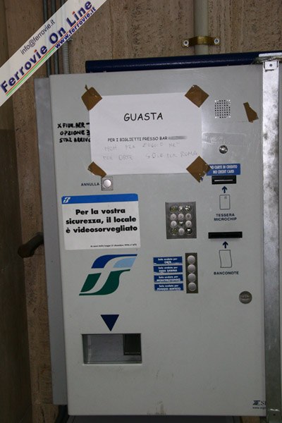 Sul vetro di quella che fu la biglietteria di stazione c'è affisso un foglio che testualmente riporta: "Per i biglietti presso Bar....." Ma se veniamo da lì e li ha terminati, dove diavolo li troviamo adesso, ci domandiamo spiazzati?
