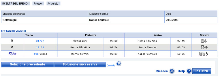 Se invece decidiamo di acquistare sempre da www.trenitalia.com in un'unica soluzione il biglietto Settebagni - Napoli Centrale (R 21737+R 12179+IC 581), (la DTR Lazio ci scrive "Nel suo caso, spiace constatare che non ha avuto la possibilità di acquistare in anticipo il biglietto regionale insieme a quello per l'IC 581."), scopriamo che il prezzo in seconda classe "Tariffa Standard" è di Euro 20,80 anziché di Euro 19,50 del Roma Termini-Napoli Centrale in Intercity.