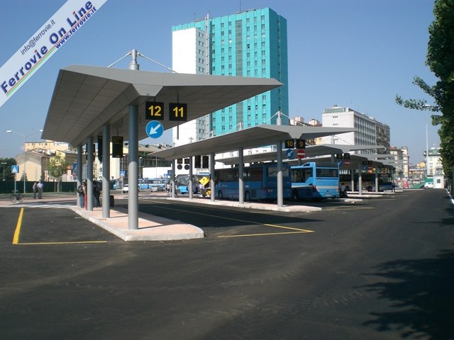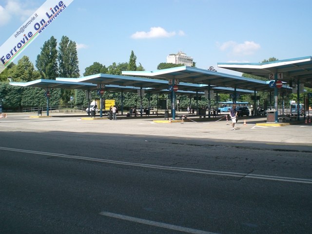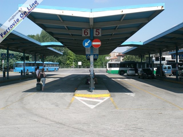 Dotata di 14 corsie per le partenze (tutte provviste di pensiline) e di marciapiedi dedicati agli arrivi, i due ingressi per gli autobus sono collocati in via Carlo Goldoni, la nuova arteria di scorrimento veloce che collega la zona della Fiera alla stazione ferroviaria, passando dietro il Tribunale. Lungo questa strada è prevista anche la costruzione della nuova sede della Questura.
