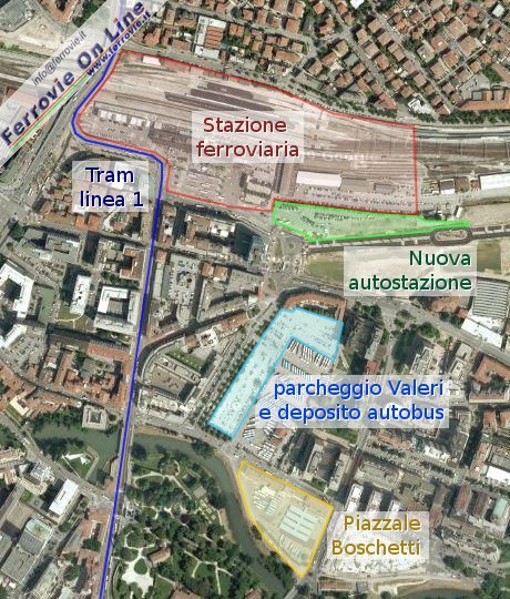 L'intervento si inquadra inoltre in un più ampio progetto di riprogettazione di alcune aree centrali della città: in corrispondenza della vecchia autostazione di Piazzale Boschetti sono già stati avviati nella medesima mattinata i lavori per la trasformazione in parcheggio a pagamento, in sostituzione del Parcheggio Valeri ora adibito a deposito degli autobus in quanto più comodo per la nuova autostazione. In futuro per l'area di Piazzale Boschetti si parla della costruzione di un auditorium comunale, mentre sul terreno adiacente si sta costruendo un altro parcheggio pubblico multipiano, la cui ultimazione è prevista nei prossimi mesi.