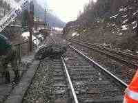 massicciata ferroviaria nei pressi della stazione di Gurtnellen (Uri). Dopo i brillamenti di roccia di sabato mattina, i geologi hanno confermato che la parte rocciosa che sovrasta la linea ferroviaria può essere considerata sicura. Nella notte tra sabato e domenica circa 50 collaboratori delle FFS hanno iniziato i lavori di sgombero del materiale roccioso e di ripristino della linea ferroviaria. I dipendenti hanno movimentato centinaia di tonnellate di sassi e terriccio, sostituito dieci metri di binario, riparato la linea di contatto, ecc.