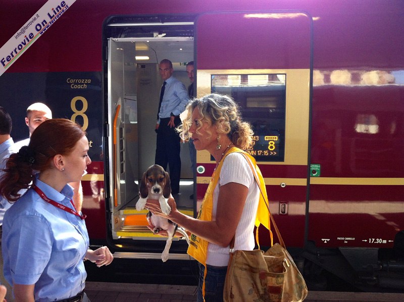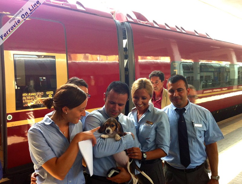 Alcuni Beagle destinati in affido a famiglie romane stanno raggiungendo la Capitale a bordo di Italo 9943 partito da Milano Porta Garibaldi alle 15.19 che arriverà a Roma Tiburtina alle 18.48.