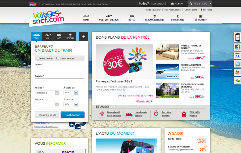 A partire dal 20 settembre, la nuova veste di Voyages-sncf.com sarà attiva su tutti i siti web del Gruppo, associata a una nuova icona dedicata alle mobile apps (disponibili per iPhone, iPad, Android, BlackBerry e Windows Phone).