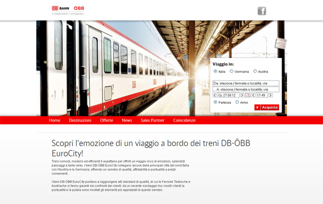 A portata di mouse si potranno così avere tutte le informazioni utili per viaggiare a bordo dei treni DB-ÖBB EuroCity che collegano l'Italia all'Austria e alla Germania, conoscere i prezzi e tutte le offerte, nonché le varie modalità di acquisto dei biglietti e i dettagli sui servizi a bordo.