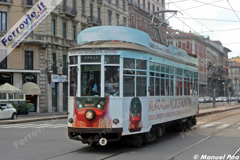 MILANO - Italo cambia binario e sale sul tram. Da alcuni giorni tre elettromotrici serie 1928 della milanese ATM, hanno ricevuto la pellicolatura pubblicitaria di Nuovo Trasporto Viaggiatori, che reclamizza il nuovo collegamento no-stop Roma - Milano in 2 ore e 45 minuti.