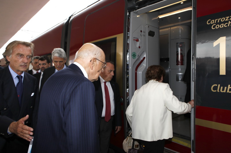 A bordo, a far "gli onori di casa", Luca di Montezemolo, azionista e socio fondatore di NTV, insieme con i vertici aziendali, il Presidente Antonello Perricone e l'AD Giuseppe Sciarrone, che hanno descritto all'illustre viaggiatore le caratteristiche tecnologiche del modernissimo treno. Napolitano ha viaggiato in ambiente Club.