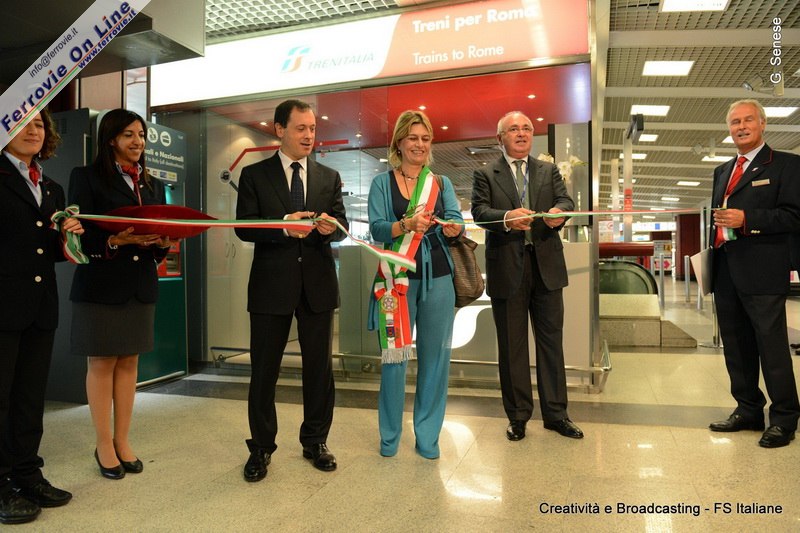 Presenti al taglio del nastro l'amministratore delegato di Ferrovie dello Stato Italiane Mauro Moretti e l'amministratore delegato di ADR Lorenzo Lo Presti.