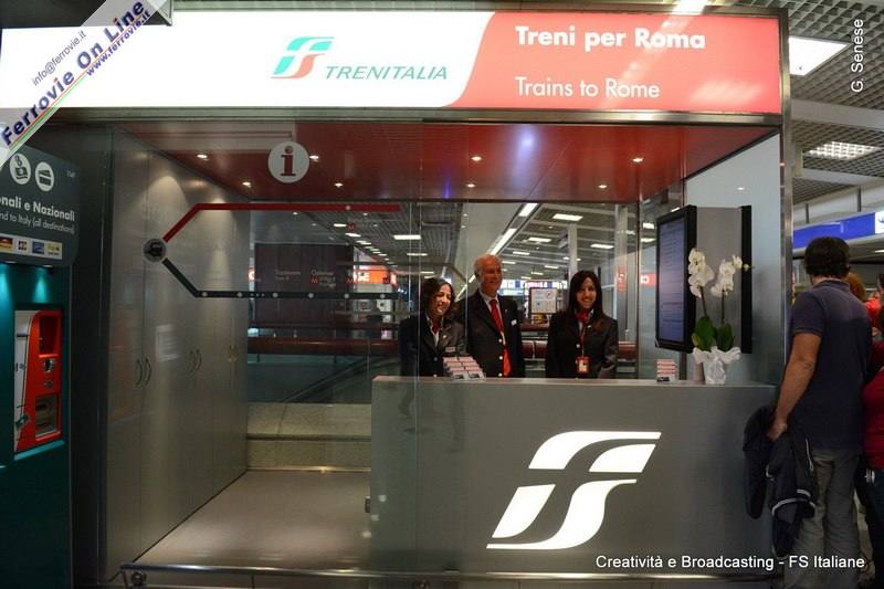 Il nuovo punto informativo rappresenta un segno concreto del lavoro sinergico, svolto durante l'anno, tra il Gruppo FS e ADR. Con l'info point - aperto dal lunedì alla domenica, dalle 7.05 alle 20.30 - i passeggeri potranno ora ricevere, dal personale di Trenitalia, tutte le indicazioni utili sui collegamenti ferroviari con la Capitale, sugli orari dei treni e sui servizi offerti in tutto il territorio nazionale. Accanto al box, inoltre, una nuova biglietteria automatica - un'altra è installata agli arrivi del Terminal 1 - per agevolare l'acquisto del ticket del treno direttamente in aeroporto o consentire la modifica delle prenotazioni già effettuate.