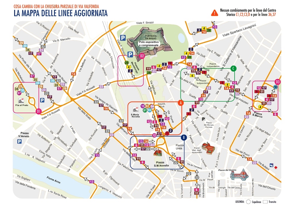 Tutte le linee ATAF provenienti dai viali che utilizzavano via Valfonda per accedere all'area Stazione subiscono una deviazione di percorso.
